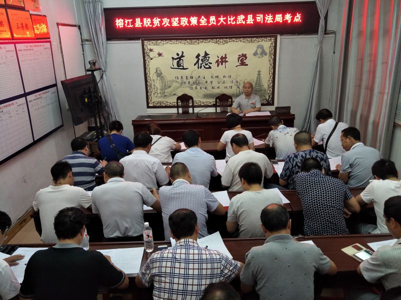 全民公众讯 为深刻认识精准扶贫工作任务的重要性和紧迫性,增强大局意识、责任意识和使命意识,有效推动脱贫攻坚工作,9月26日下午,榕江县司法局组织全体干部职工40余人参加脱贫攻坚政策全员大比武知识考试。