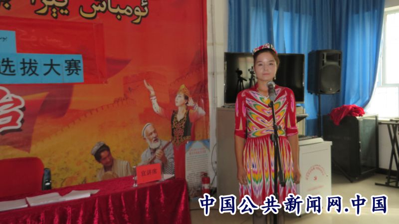 参赛选手阿依努尔•孜亚吾东说:“我很幸运参加这次比赛,今天我要给大家说说心里话,政府给我们盖了新房,又宽又亮又安全,门口都铺了柏油路,种地、买农具也有补贴,孩子上学免费,免费给我们体检,党和政府给了我们那么多优惠政策,让我们过上了幸福生活,我们从内心里感谢党。我作为一名入党积极分子,在思想上和行动上要和党中央、习近平总书记保持一致,自觉维护民族团结,反对‘三股势力’和宗教极端思想,为社会稳定贡献自己的一份力量”。