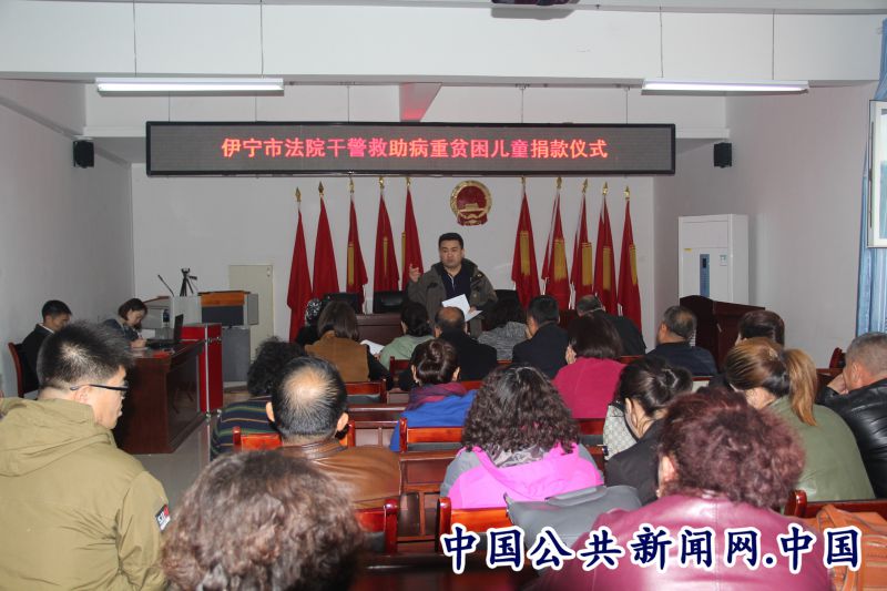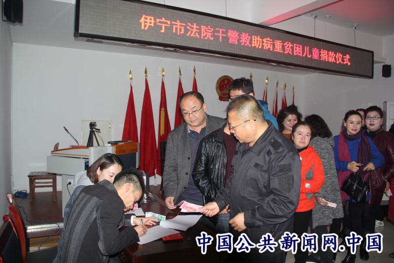 全民公众讯(王慧飞)2017年10月20日上午,伊宁市人民法院下沉伊宁市汉宾乡汉宾村的干警们发起了一场向病重贫困儿童献爱心的捐款活动。院长阿布都热西提•艾沙江同志宣布捐款活动开始,62名干警踊跃参加,活动现场气氛热烈,干警们为病重贫困儿童共筹集资金4765元。
