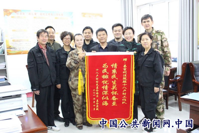 全民公众讯(贾佳佳)“真是太谢谢你们了,你们来了以后给了我们很多关心和帮助,我都不知道该怎么感谢你们,只能用这个锦旗表示一下我的心情。” 10月26日,吉木萨尔县二工镇十八户村村民莫合塔尔•莫合买提和妻子买紫亚•萨塔尔对昌吉州法院驻村工作队表示感谢,将一面写有“情系民生关怀备至 为民排忧情深似海”的锦旗送到了昌吉州中院驻十八户村工作队的驻地。