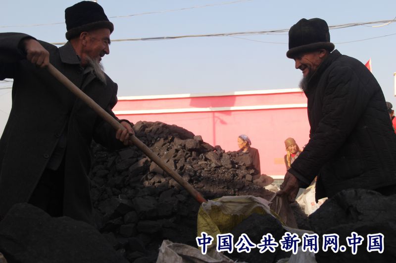 贫困户汗沙汗•吐尼亚孜身体一直不好,这次领到了取暖煤,非常高兴,她激动地说“工作队非常关心我们困难群众的生产生活,不仅给我们送农资等解决我们生产中的困难,帮助我们联系外出务工增收,现在过冬了,还为我们送来了取暖煤,感谢党和政府的工作队!”