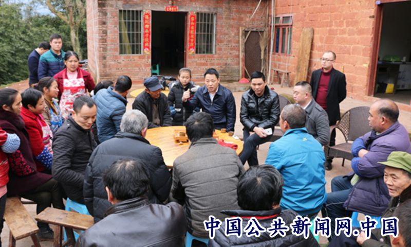 赤水市委书记况顺航(中)在元厚镇开院坝会宣传扶贫政策