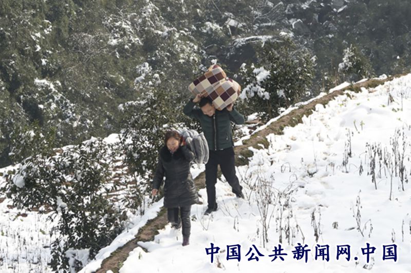 大雪纷飞,赤水市帮扶干部为贫困户送去御寒衣被