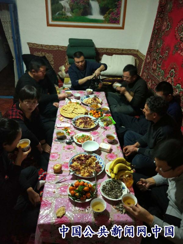 全民公众讯(左雷)12月13日傍晚,市法院干警沈新忠同志约着该院其他几名干警,带着米、面、油、肉、瓜子、花生、水果到了他的亲戚吐尔孙买买提•热依木家。原来,为了进一步拉近彼此的关系,增加彼此的了解,将十九大精神宣传到沈新忠同志与他的亲戚吐尔逊买买提•热依木决定,邀请市法院入住干警和几个关系好的邻居,在他家开一个小小的联谊会。