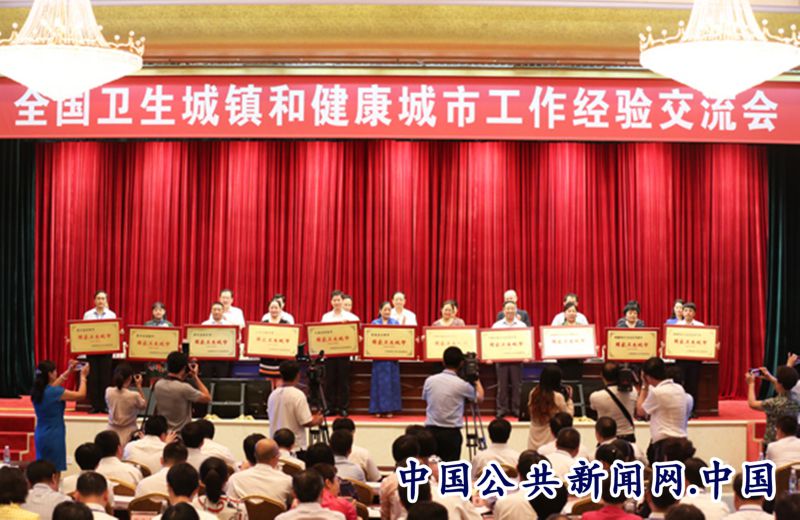 2017年7月28日,全国卫生城镇和健康城市工作经验交流会山东省威海市召开,贵州省赤水市人民政府党组成员、双创工作指挥部副指挥长胡德忠(左三)在台上领奖。