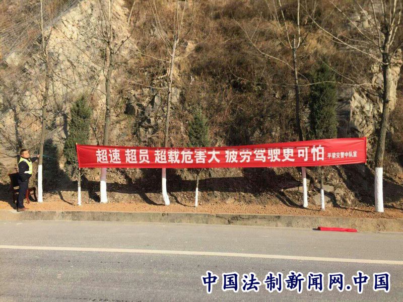 通过悬挂宣传横幅大力开展宣传活动,有效的提醒过往驾驶员及广大交通参与者遵守道路交通安全法律法规,让广大群众“尊法守规明礼、安全文明出行”。