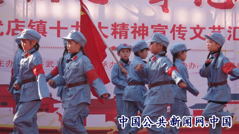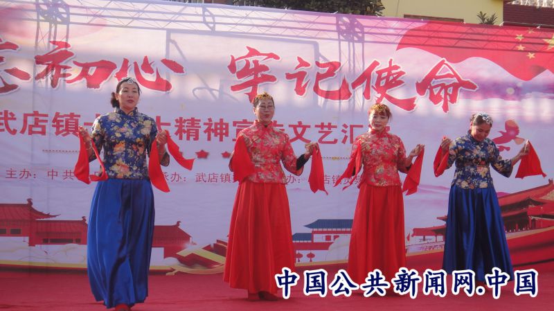 在文艺汇演现场,武店镇党委书记唐中柱在致辞中表示,在此举办十九大精神文艺汇演,旨在创新武店的文化发展,进一步宣传十九大精神,为丰富群众的文化活动营造了良好氛围。通过演职人员的不懈努力,表演方式多样,精彩纷呈,主题鲜明,体现了武店人民群众在十九大精神的指引下,实施“五大发展”理念,团结在以习近平为总书记的党中央周围,不忘初心,牢记使命,高举中国特色社会主义伟大旗帜,决胜全面建成小康社会,以两个百年的奋斗目标,为建设绿色、法制、美丽的武店作出新的更大的贡献。