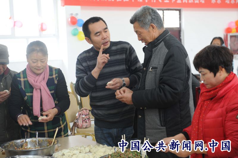 热腾腾的饺子端上来,亲戚们相互给对方盘子里倒蘸料、夹饺子,用餐完毕后,法院的干警们将大蛋糕抬进了活动现场,并给81岁的王振岱63岁的蒲元周戴上生日王冠,并在每人的脸上涂抹了象征幸福的蛋糕,两位老人像孩童般笑出幸福的笑容。王振岱即兴唱起了《团结就是力量》歌曲,现场想起了热烈的掌声。