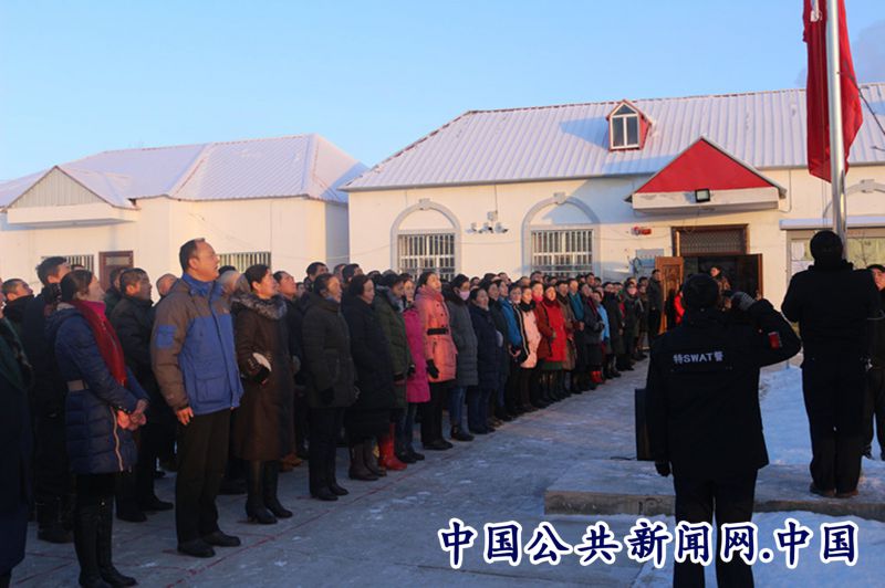 布尔津县人民法院党组书记元旦假期赴驻村点参加升国旗仪式。