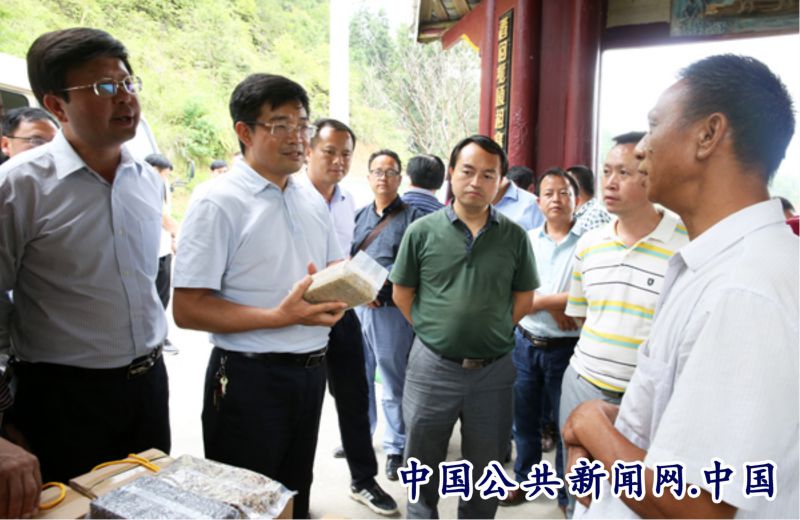 2017年6月20日,中共黎平县委书记王茂才(左二)到茅贡镇流芳村调研扶贫产业有机稻发展情况(杨代富 摄)