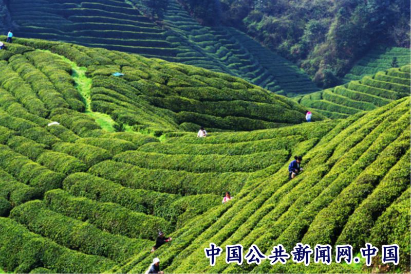 茶农在黎平县生态茶场采摘明前茶(胡宪林 摄)