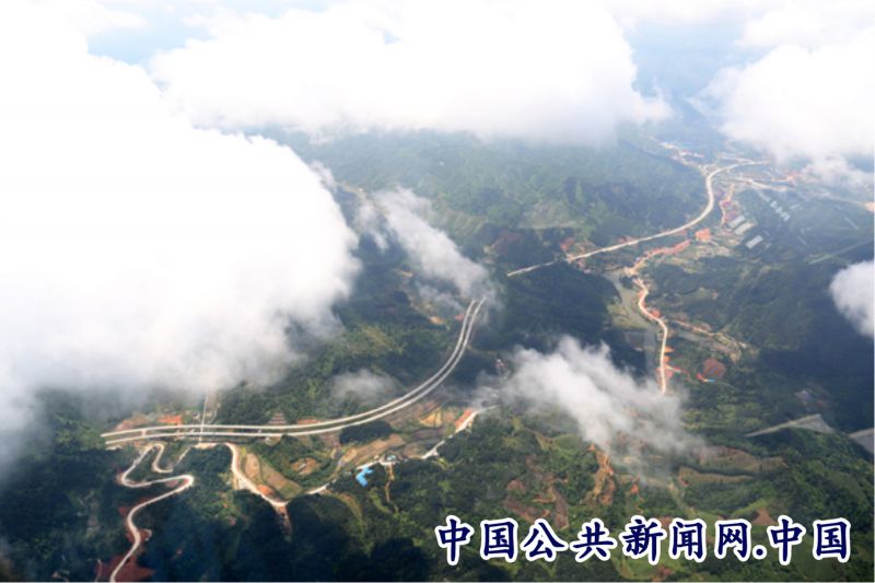 这是航拍的黎平县境内的黎(平)洛(香)高速公路美景。如带的高速公路在满眼绿色的山区大地蜿蜒穿行,宛如一幅幅交通生态画卷(杨代富 摄)