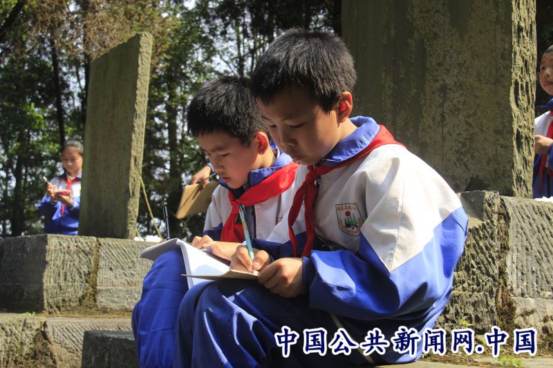 少先队员认真学习烈士英雄事迹。
