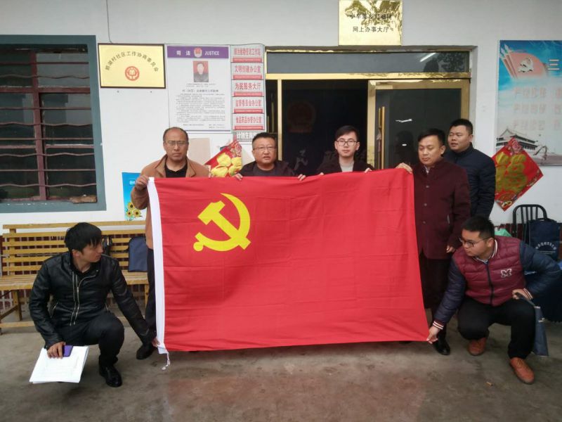 图为县文明办全体党员在小辛集乡郭湖村委会合影