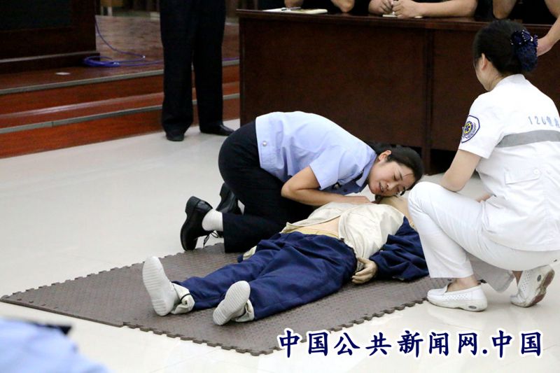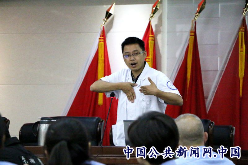 培训前,江油市人民医院急诊科程主任,结合发生在120急救中心的真实案例,通过多媒体以幻灯片展示形式,以观看CPR(心肺复苏术)和AED(缓解心室颤动)专业操作视频等形式,向参加培训的民(辅)警,详细讲述了案发现场急救心肺复苏术理论知识及其操作流程,重点讲解了民(辅)警在接处警过程中,遇到急救情况时,应注意的急救方法、工作步骤、操作流程。