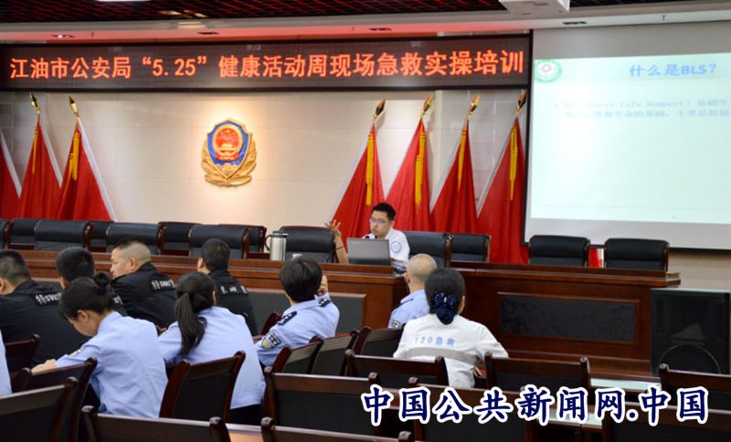 全民公众讯(赵万萍 段云龙 张浚梅)5月29日下午,江油市公安局诚邀江油市人民医院120急救中心主任程缙,急救中心护理部组长张警华,在局业务技术用房四楼多功能会议室,开展“5.25”健康周现场急救实操培训活动。江油市公安局组织政治处、交警大队、特巡警大队、指挥中心、警务保障室、城区五所相关人员参加培训。