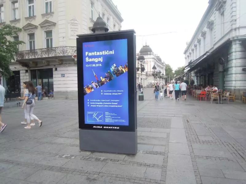 塞尔维亚步行街上已摆放“魅力上海”海报