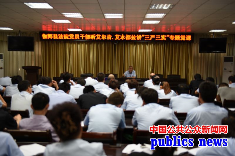 公众全民讯(赵剑琪)在开展“三严三实”专题教育活动中,新疆维吾尔自治区伽师县人民法院党组副书记、院长艾尔肯·艾木都拉以《践行“三严三实”新要求,适应司法作风新常态》为主题,带头为全院党员干警上了一堂生动的党课,让干警足不出门接受了一次党性和精神上的洗礼。