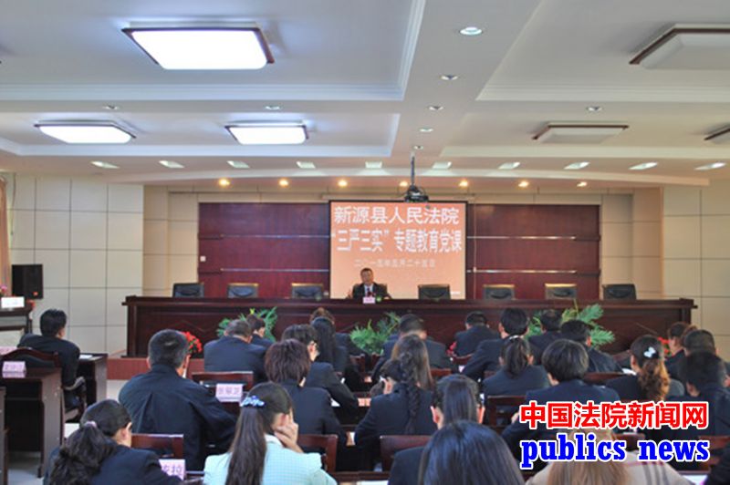 5月25日下午,新源县人民法院召开全院大会,该院党组书记为全院干警上了一堂主题为“严守‘三严三实’狠抓司法作风建设”党课。2个半小时的课程,主要围绕“三严三实”提出的背景、内容、发展脉络以及“不严不实”的具体表现和认真学习和深刻领会“三严三实”对法院工作的新要求五个方面讲授。