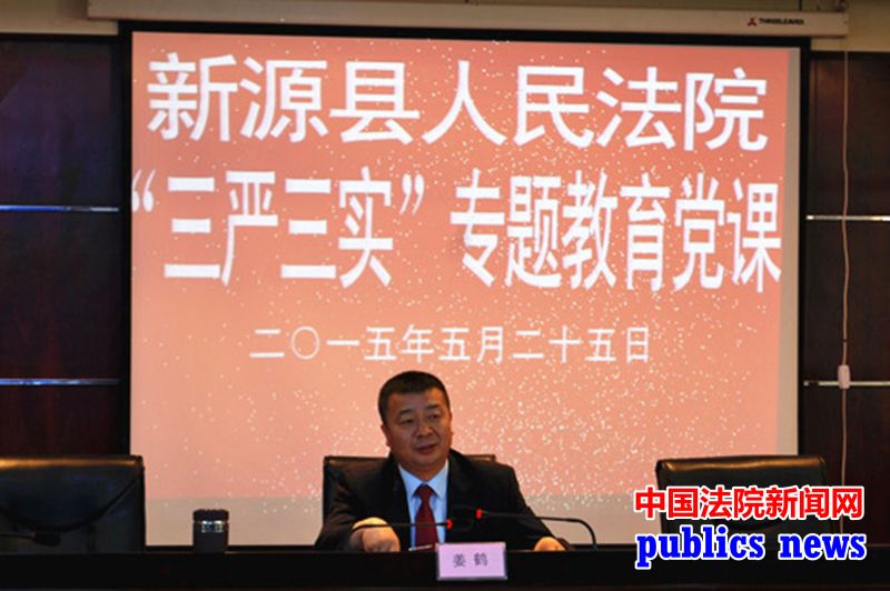 公众全民讯(郝胜泉)5月25日,新源县人民法院召开全院大会,由该院党组书记姜鹤为全院干警上了一堂“三严三实”专题教育党课。