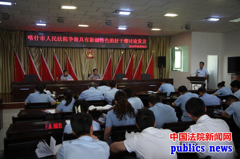 公众全民讯(王素晶)6月4日,喀什市法院党组在深入学习张春贤书记《争做具有新疆特色的好干部》的基础上,组织全院干警开展了争做具有新疆特色的好干部专题讨论,进一步统一了思想认识。