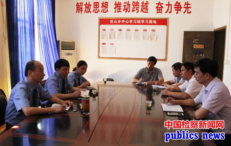 党组书记、检察长张明波(左一)到后山乡召开“一创双提升”工作座谈。